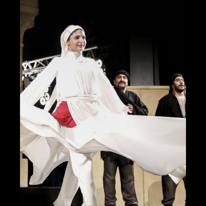 She made her first solo Sama debut playing the part of Hannaneh in Hallaj Opera by Mr. Parvaz Homay, an Iranian prominent composer and singer, in Saadabad palace, Vahdat hall & Iranian hall Tehran, in the summer of 2018. • She performed solo Sama dances in Ararat Armenian Club, Vahdat Hall in 2020. • She performed Sama in commemoration of the Armenian genocide in Ararat Armenian Club in Tehran, in collaboration with Ararat Group. • In Siavash and Soodabeh play directed by Ms. Anoo Abad, Caroline Khodadian dancing while wearing a red costume, symbolizes the blazing fire through which Siavash (a hero in Ferdowsi’s Shahnameh) should ride in order to prove his innocence. In November 1402, she played the role of Satan in Khodayan Kohn Theater directed by Bayaina Mohammadi. In February 1402, he acted as a movement designer and actor in the Schizophrenia Theater in Shahrazad Theater campus, directed by Hamed Rahimi Nasr.