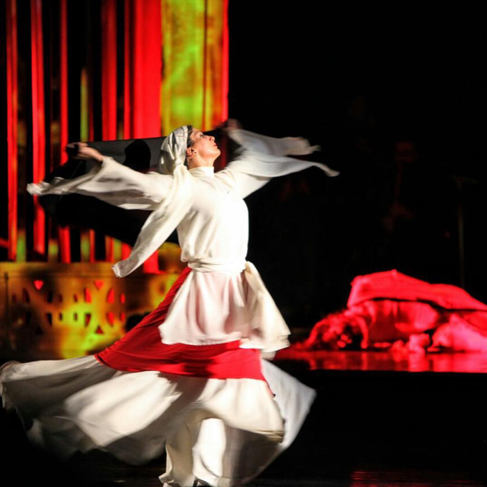 Caroline Khodadian created a unique dance style called “Samamenco” by innovatively combining Sufi dance and flamenco. In 2019, she went to the National Dance and Theatre Academy of Armenia, where she trained under renowned Armenian artist Sofy Devoyan and movement designer Maria Hovsepyan, specializing in Armenian dance and hand movements. She also studied at the Anna Kalashyan Dance Academy in Armenia and continued advanced training in Iran with her dance teacher, Karine Manocherian. Additionally, Caroline took courses to learn how to play the castanets, incorporating the Sevilliana dance style into her performances. She also studied the daf under Vandad Masahzadeh, a composer and conductor, and later with Zakarya yousefi, learning academic daf playing.
